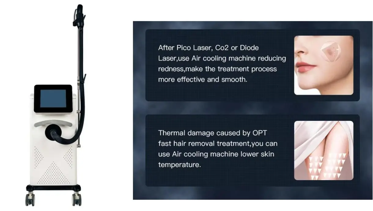 1) 지속적으로 냉각 공기를 제공하여 조직을 표적으로하여 레이저 및 IPL 처리 중 통증 및 열 손상을 최소화하고 미용 주사를위한 일시적인 완화를 제공합니다.